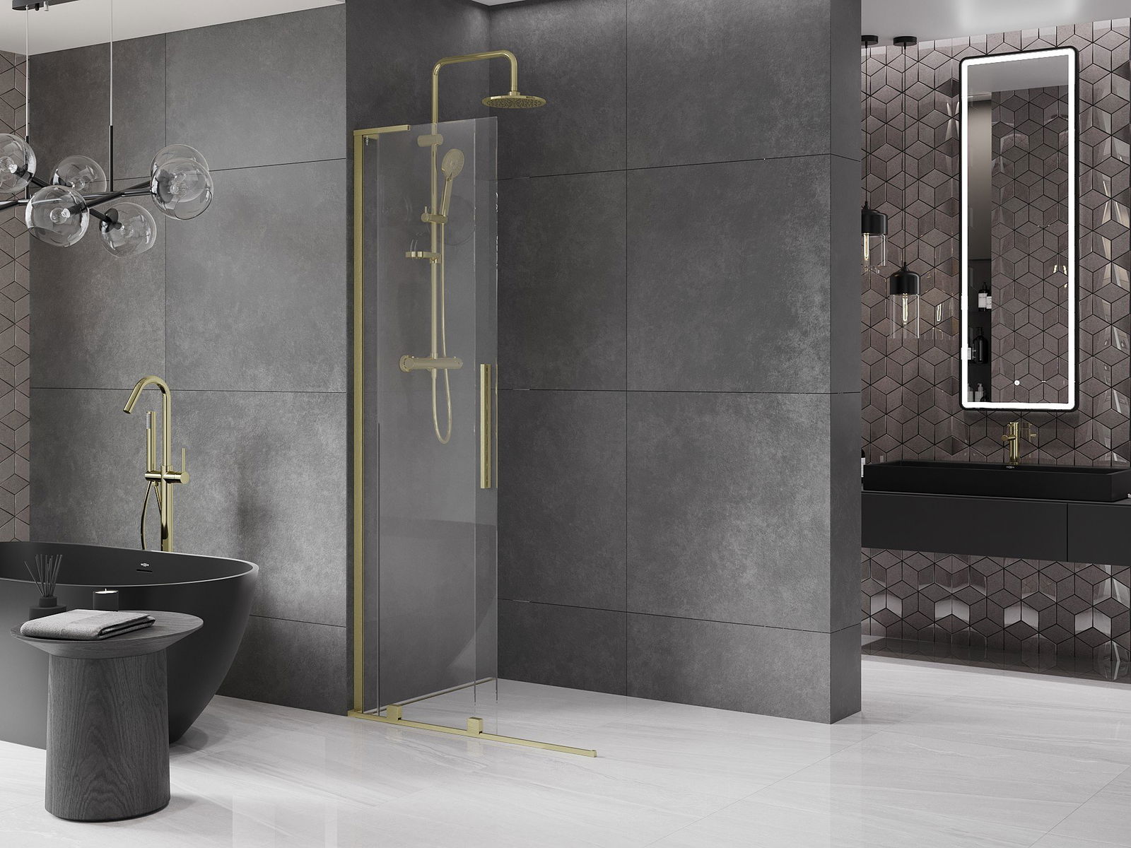 Mexen Velar L paroi de douche coulissante Walk-in 110 x 200 cm, transparent 8 mm, or brossé - 871-110-003-03-55