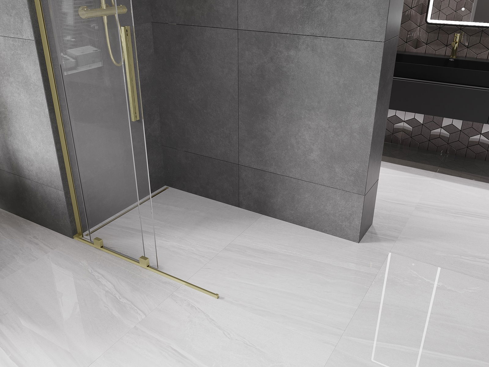 Mexen Velar L paroi de douche coulissante Walk-in 120 x 200 cm, transparent 8 mm, or brossé - 871-120-003-03-55