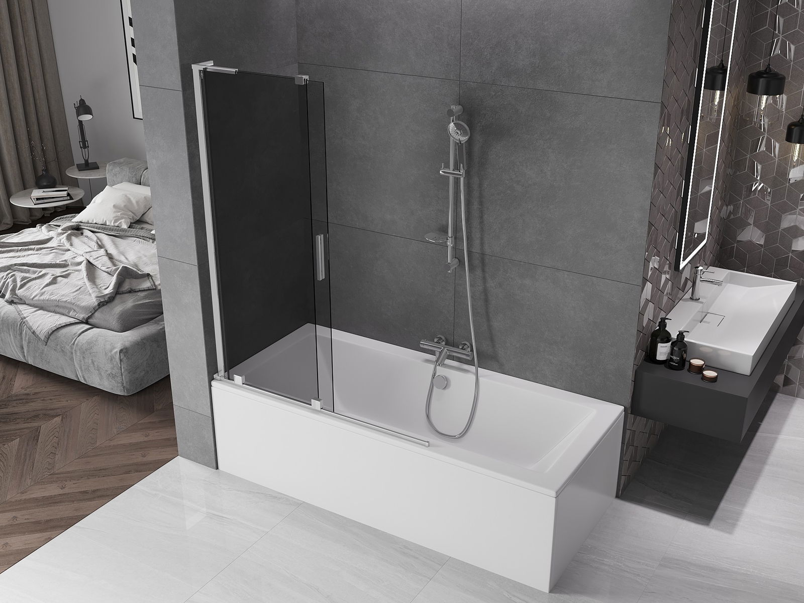 Mexen Velar L paroi de baignoire 2 volets coulissants 120 x 150 cm, graphite, chrome - 896-120-003-41-01