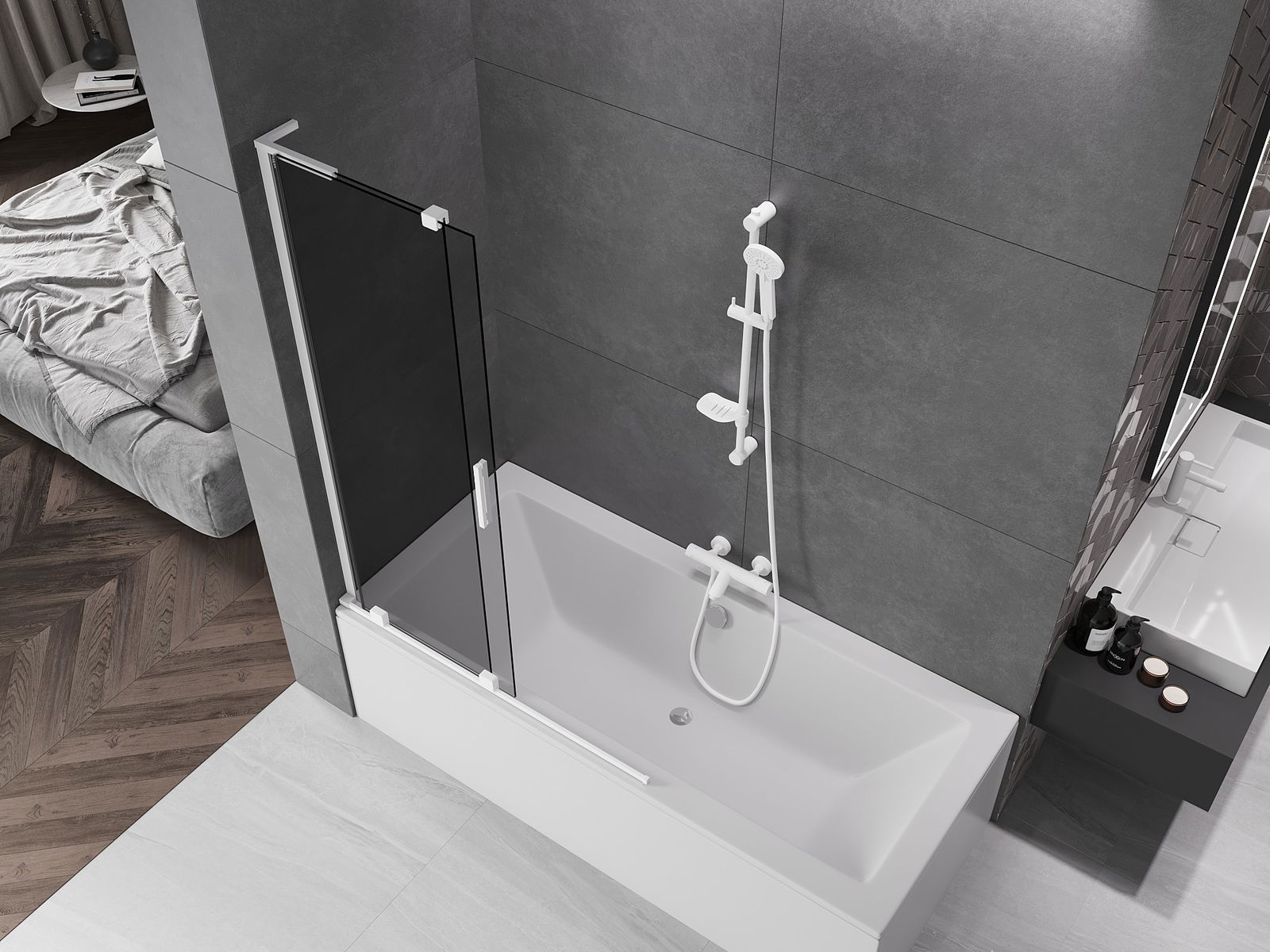 Mexen Velar L paroi de baignoire à 2 battants coulissants 110 x 150 cm, graphite, blanc - 896-110-003-41-20