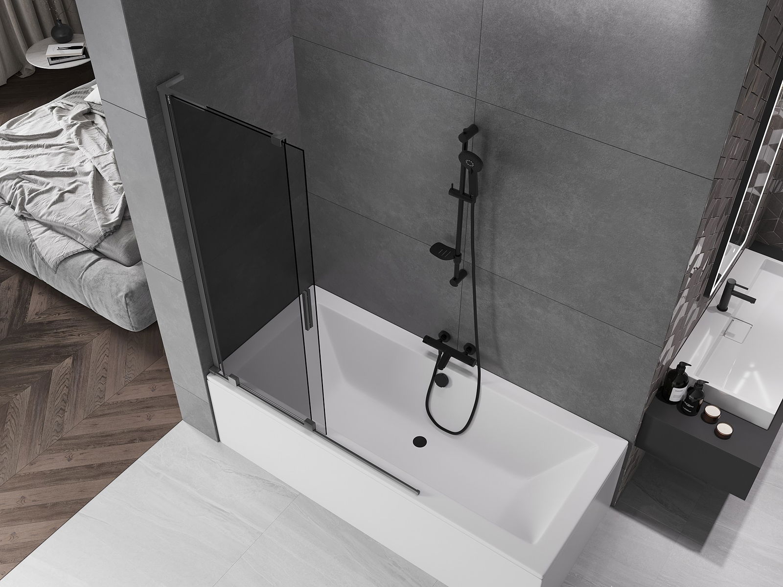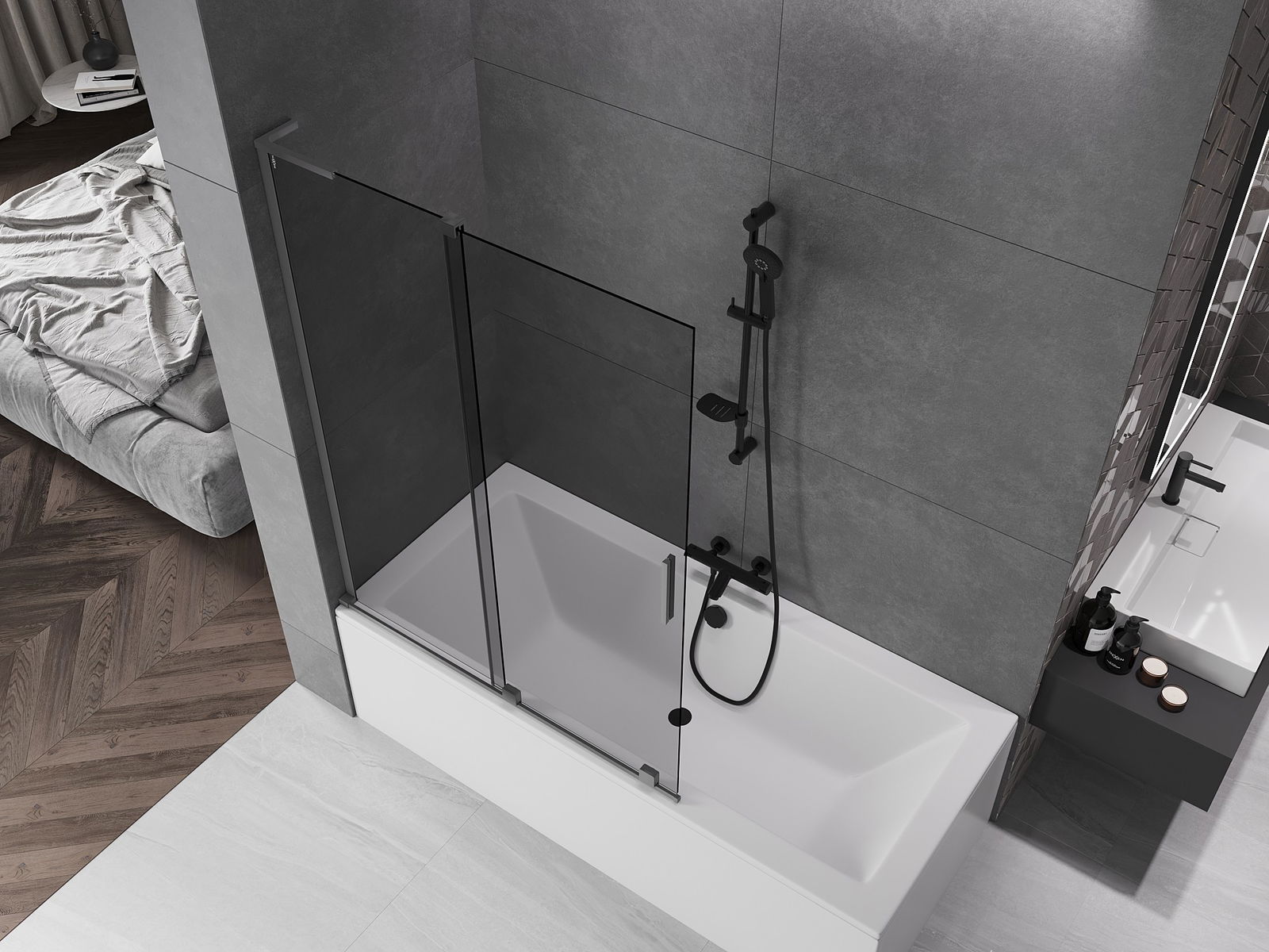 Mexen Velar L pare-douche de baignoire coulissant à 2 volets 120 x 150 cm, graphite, métal pistolet - 896-120-003-41-95