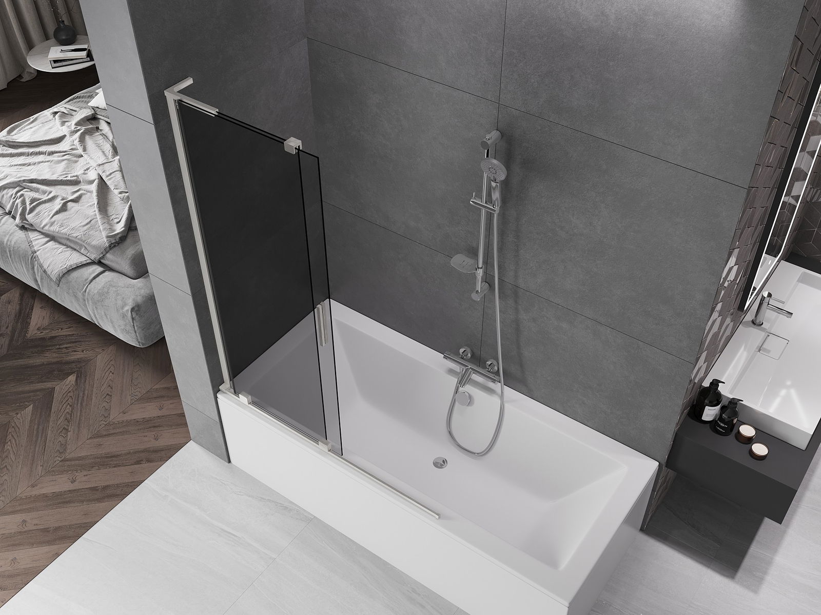 Mexen Velar L paroi de baignoire coulissante à 2 vantaux 120 x 150 cm, graphite, nickel brossé - 896-120-003-41-97