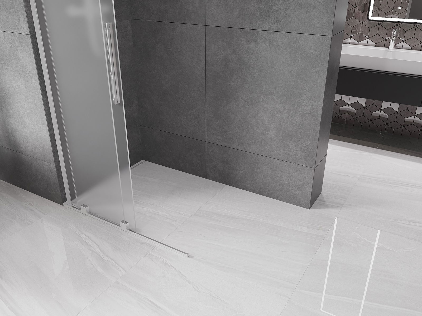 Mexen Velar L paroi de douche coulissante Walk-in 90 x 200 cm, givre 8 mm, chrome - 871-090-003-33-01