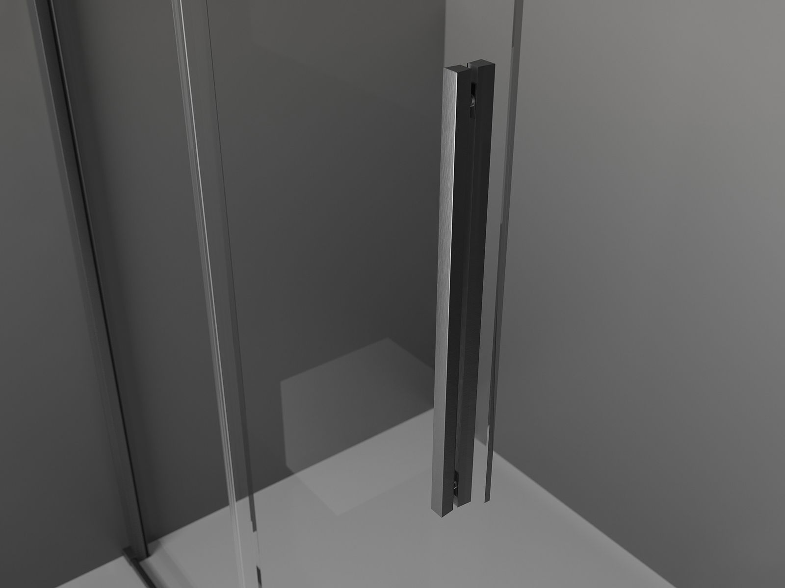 Poignée pratique et confortable en acier inoxydable. La forme moderne associée à une finition assortie à la couleur des profilés confère à l'ensemble un aspect moderne et élégant, soulignant l'esthétique de chaque salle de bain.