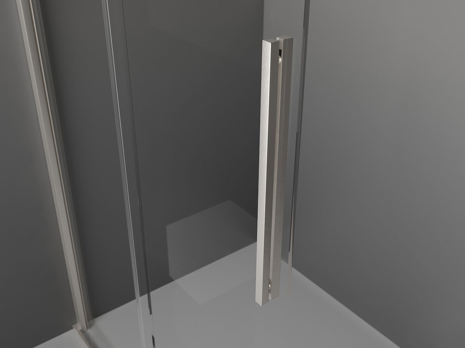 Poignée pratique et confortable en acier inoxydable. La forme moderne associée à une finition assortie à la couleur des profilés confère à l'ensemble un aspect moderne et élégant, soulignant l'esthétique de chaque salle de bain.
