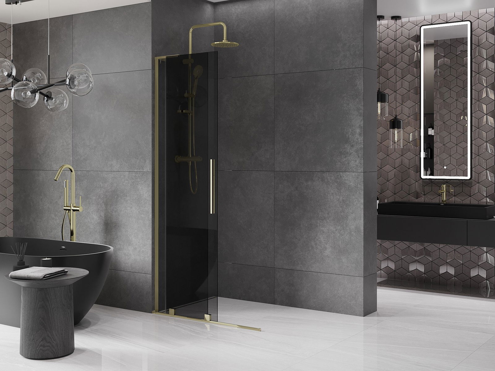 Mexen Velar L cloison de douche coulissante Walk-in 110 x 200 cm, graphite 8 mm, doré - 871-110-003-43-50