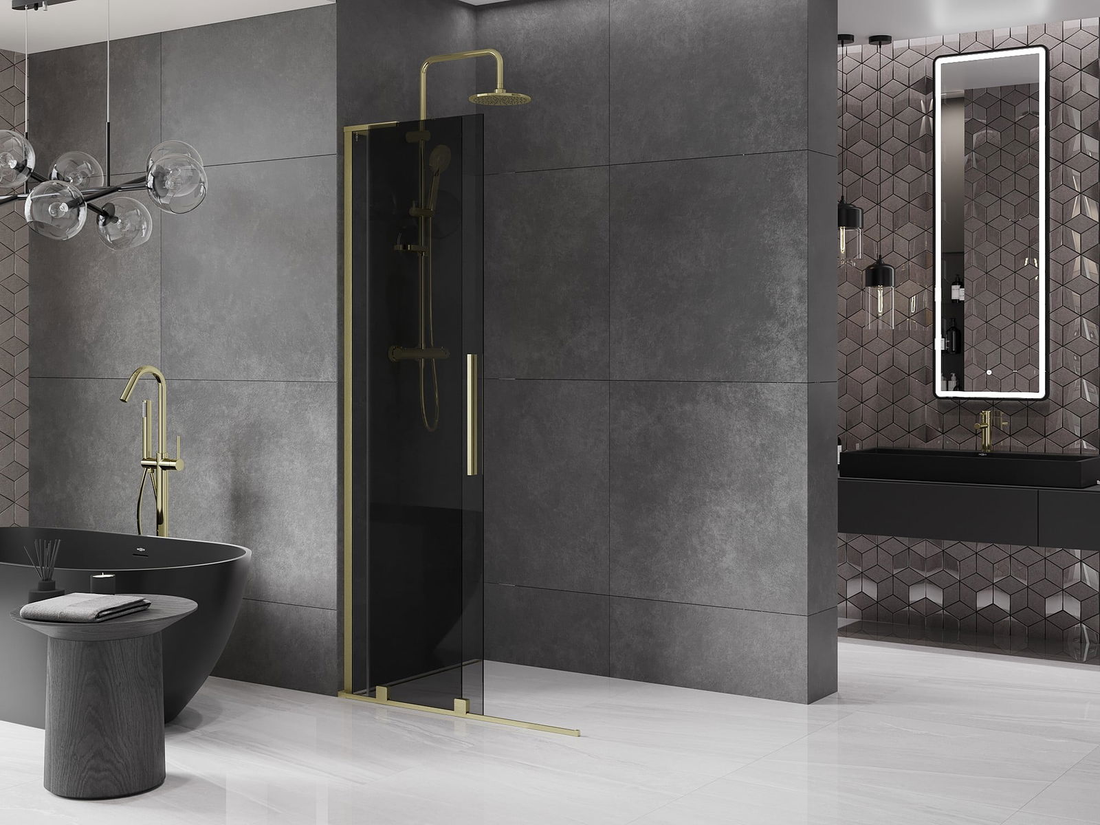 Mexen Velar L panneau de douche coulissant Walk-in 90 x 200 cm, graphite 8 mm, or brossé - 871-090-003-43-55