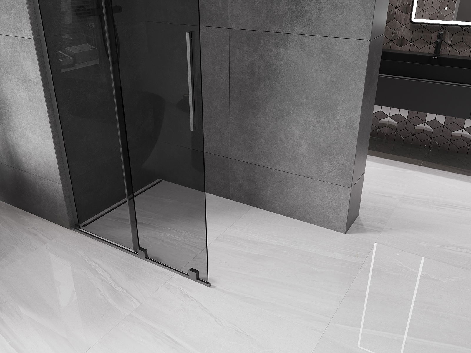 Mexen Velar L paroi de douche coulissante Walk-in 110 x 200 cm, graphite 8 mm, gris gun brossé - 871-110-003-43-66