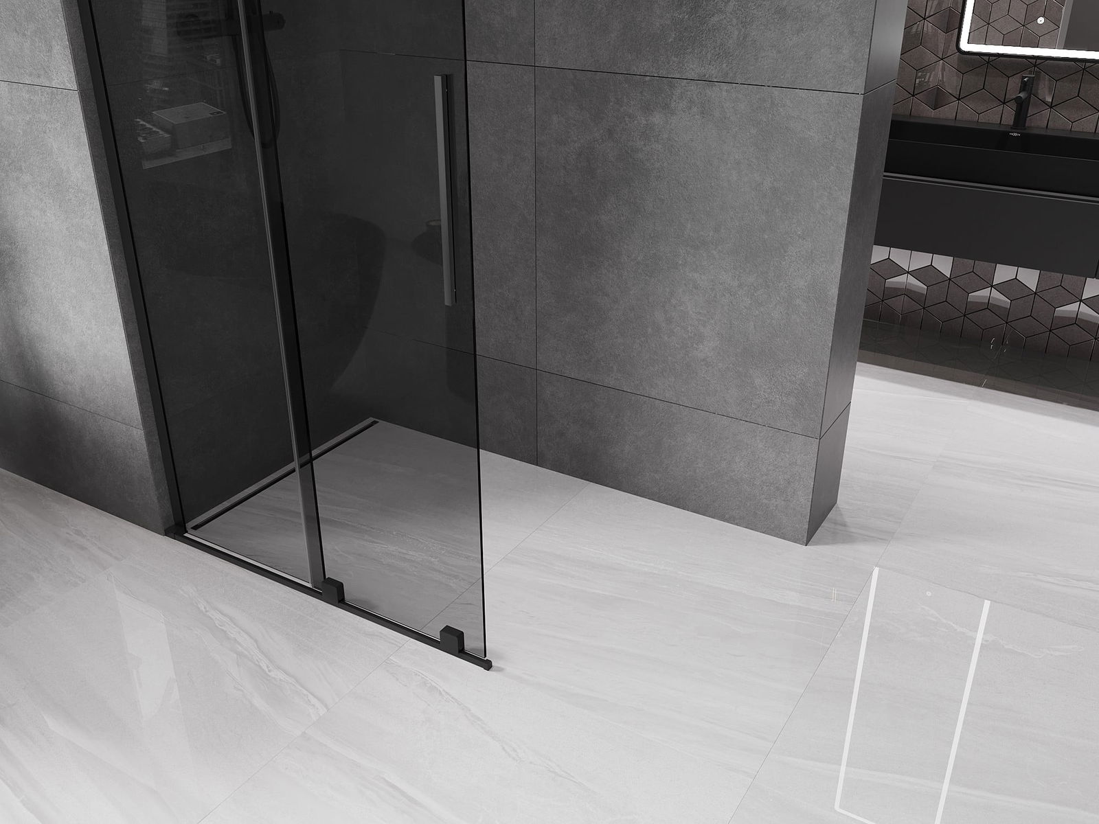 Mexen Velar L paroi de douche coulissante Walk-in 90 x 200 cm, graphite 8 mm, noire - 871-090-003-43-70