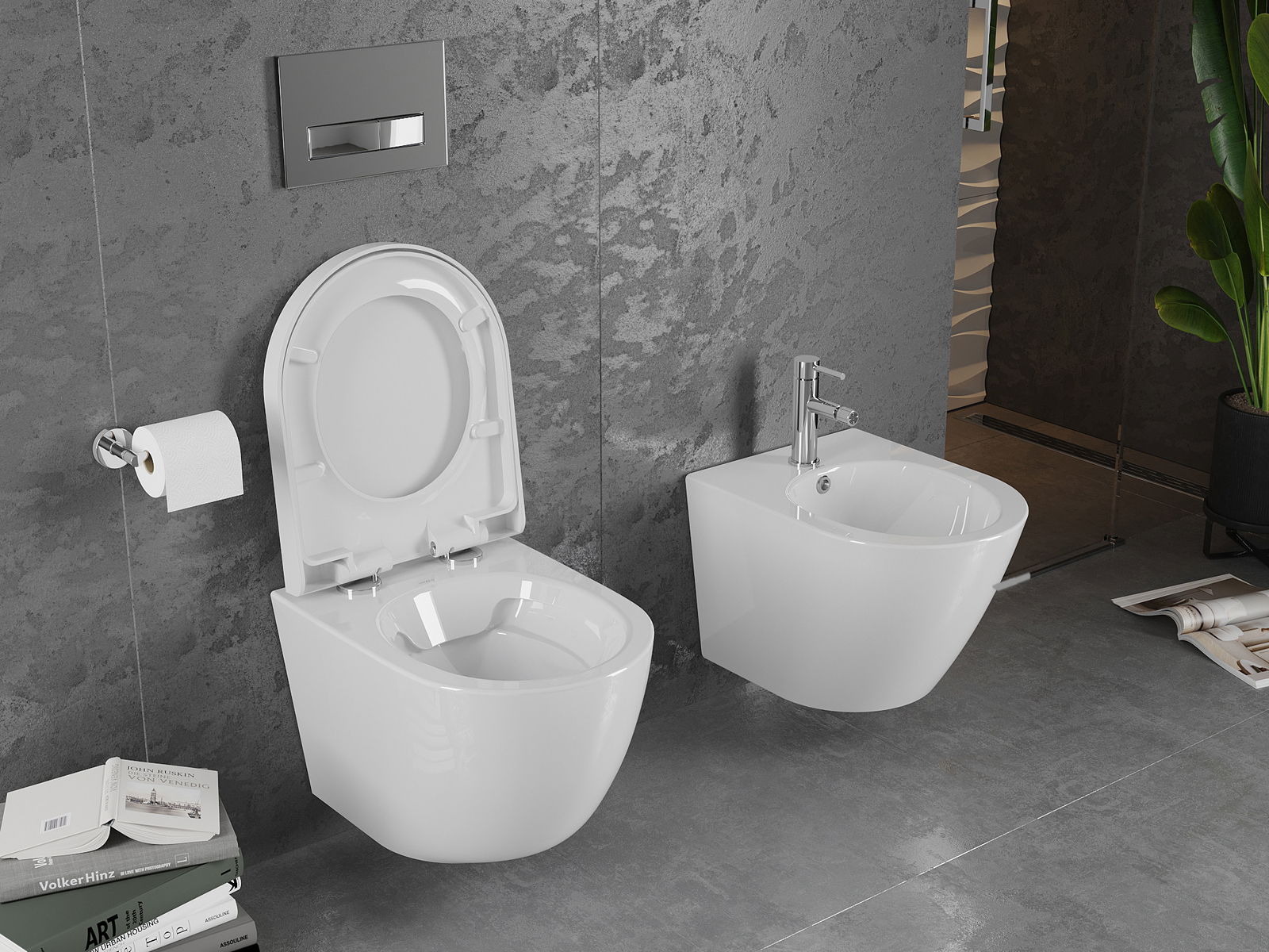 Mexen Lena cuvette WC sans rebord avec abattant à descente lente, durplast dur, blanc brillant - 30220200