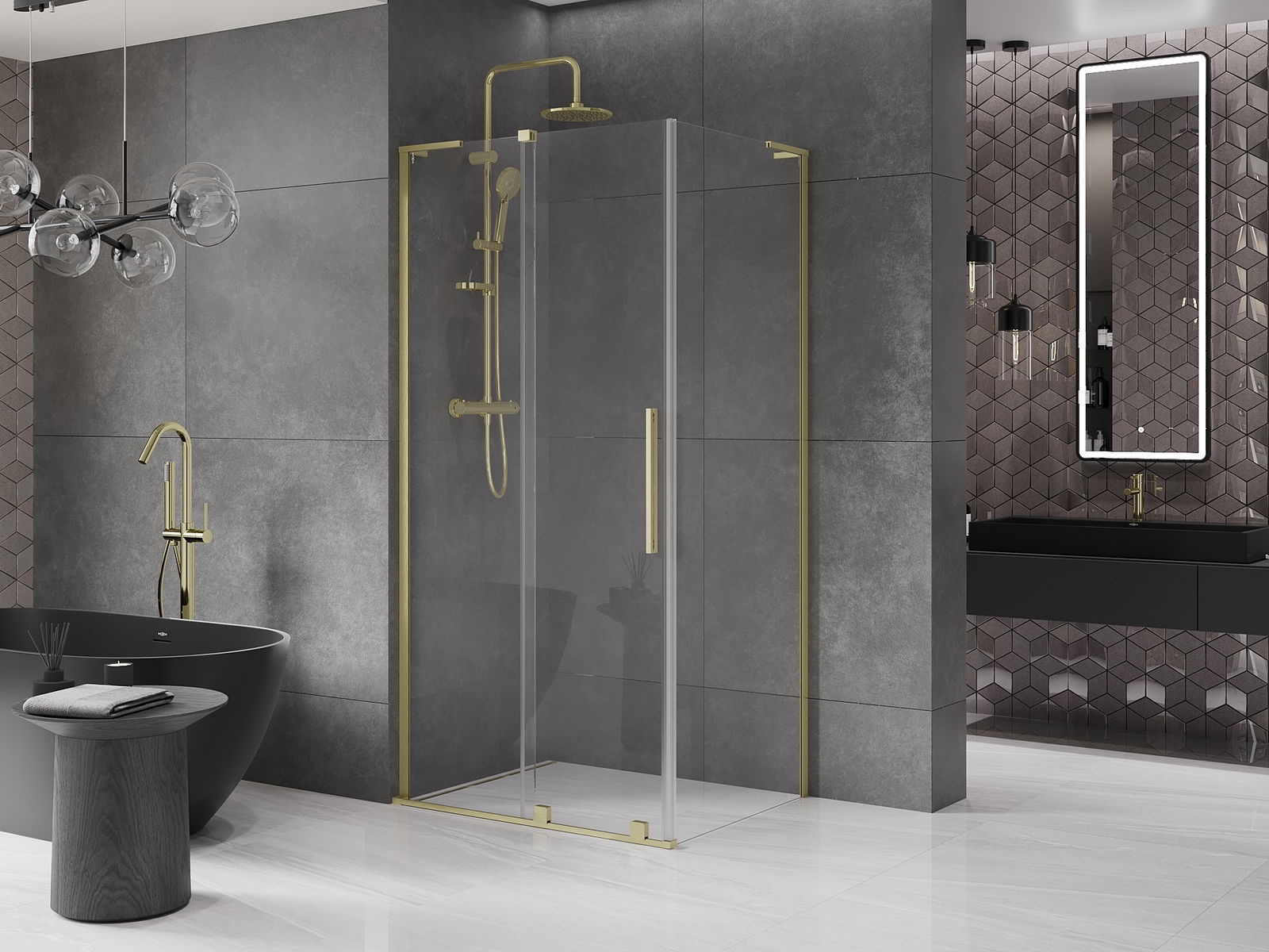 Mexen Velar L cabine de douche coulissante 100 x 90 cm, transparent, or brossé - 871-100-090-03-55