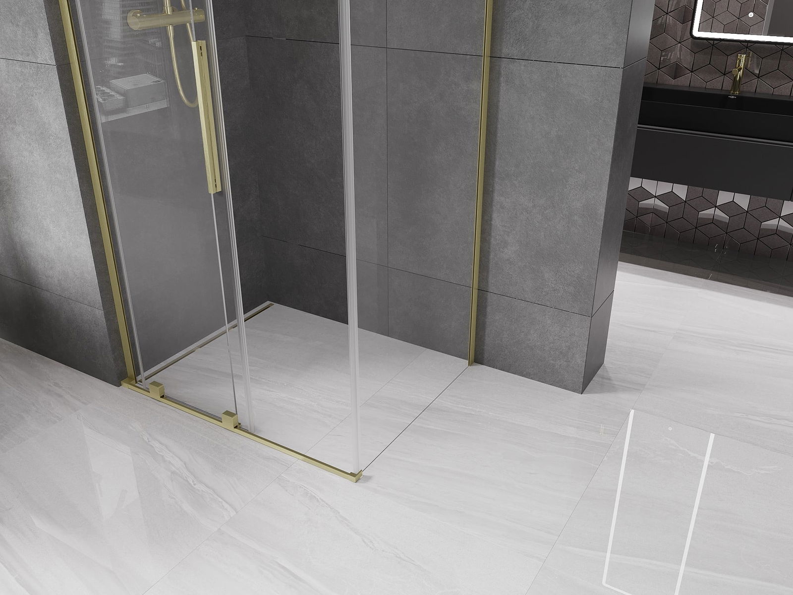 Mexen Velar L cabine de douche coulissante 110 x 75 cm, transparent, or brossé - 871-110-075-03-55