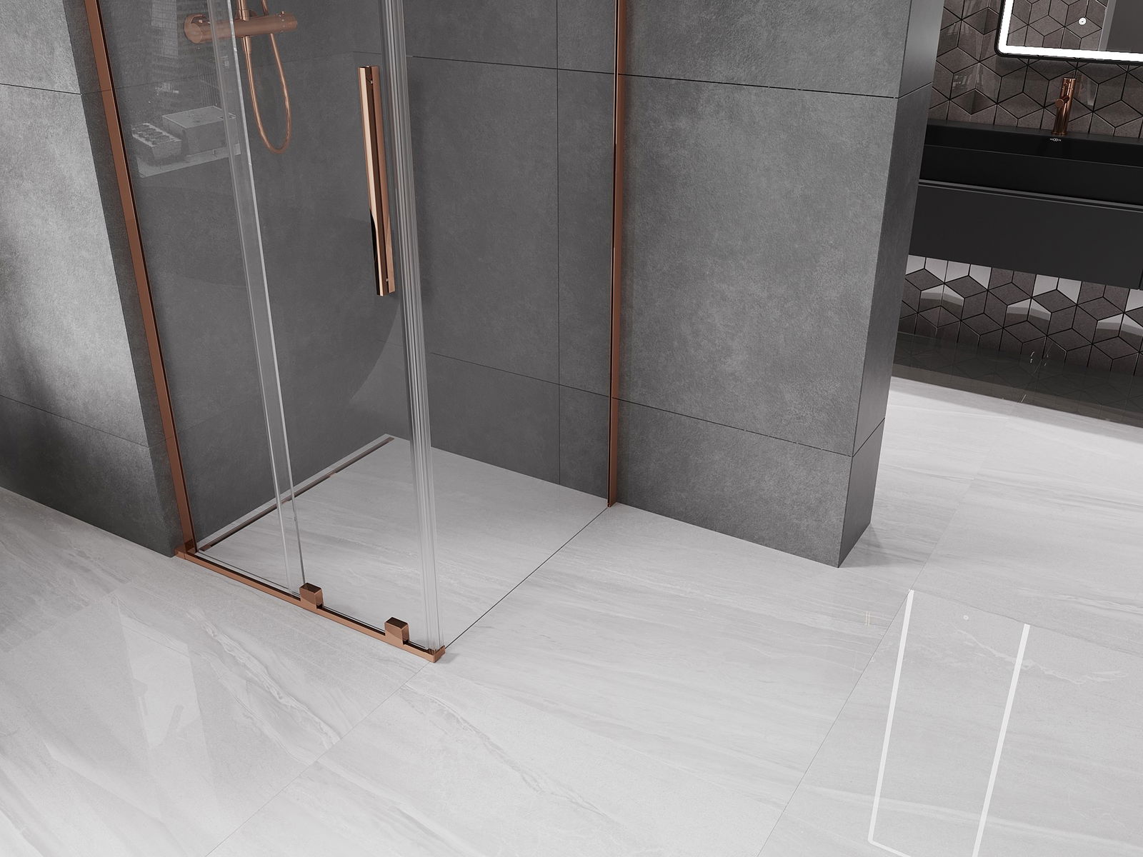 Cabine de douche coulissante Mexen Velar L 100 x 100 cm, transparent, or rose - 871-100-100-03-60