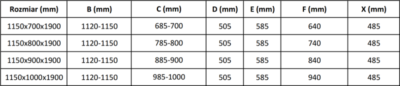 Taille : 115x100 cm (porte 115 cm. paroi 100 cm)