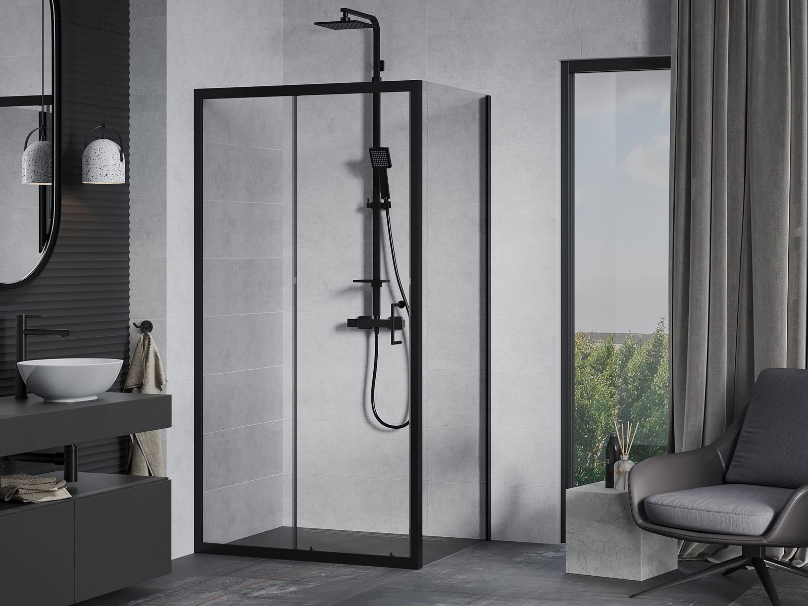 La poignée pratique et confortable est fabriquée en métal durable et résistant. Sa forme à la mode, combinée à une finition assortie à la couleur des profilés, donne à l'ensemble un aspect moderne et stylé, soulignant l'esthétique de chaque salle de bain.