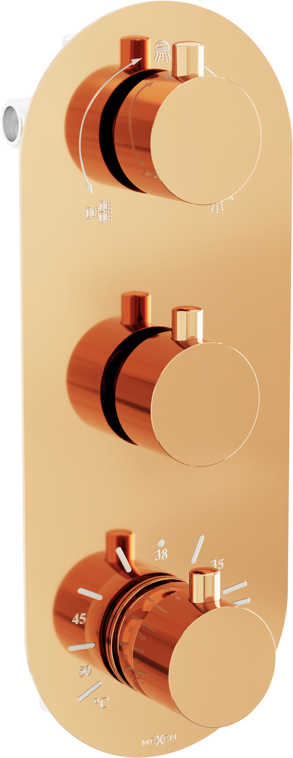 Mexen Kai mitigeur thermostatique bain-douche à 3 sorties, or rose - 77603-60