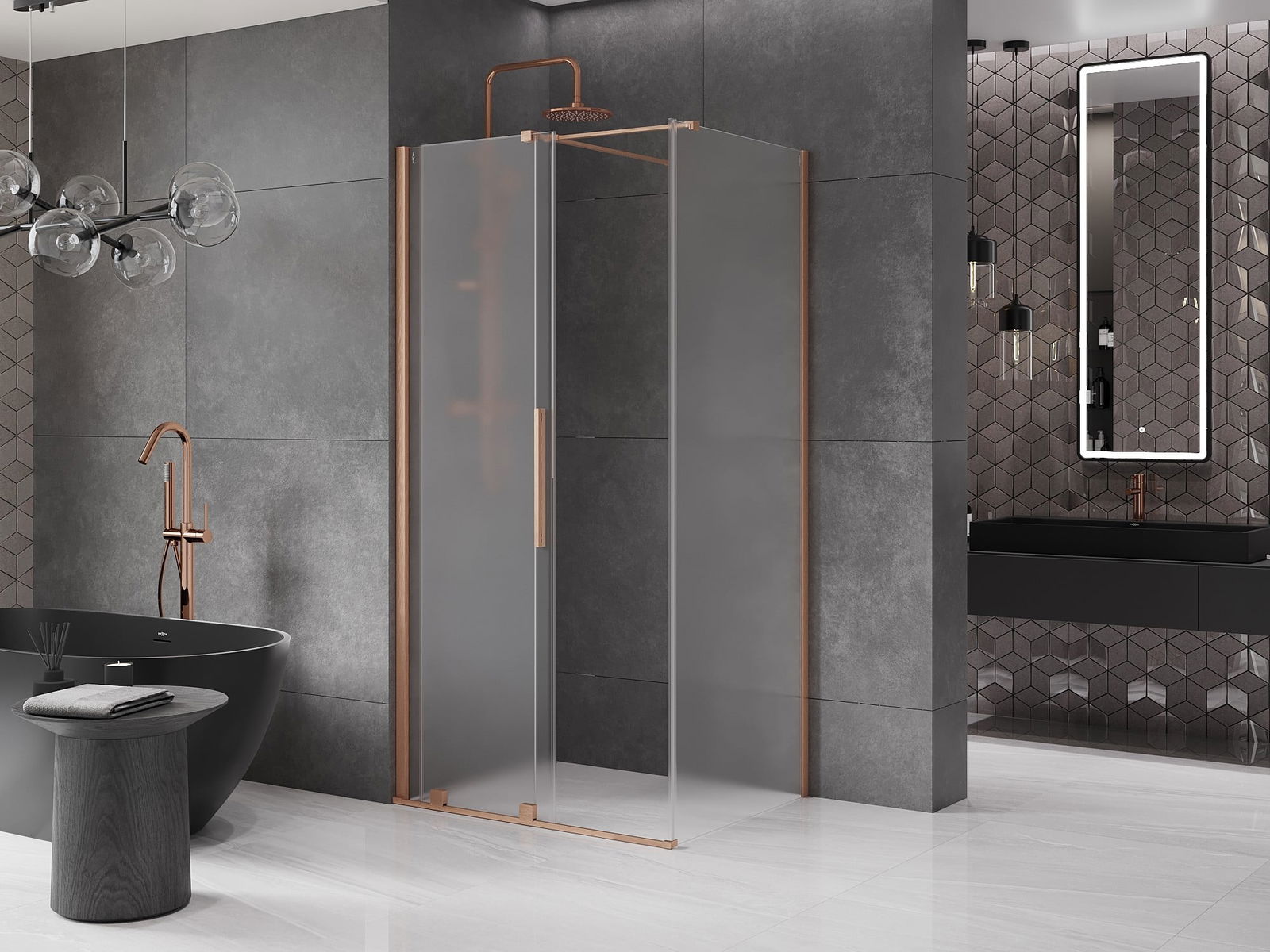 Mexen Velar cabine de douche coulissante 120 x 80 cm, givre, cuivre brossé - 871-120-080-31-65