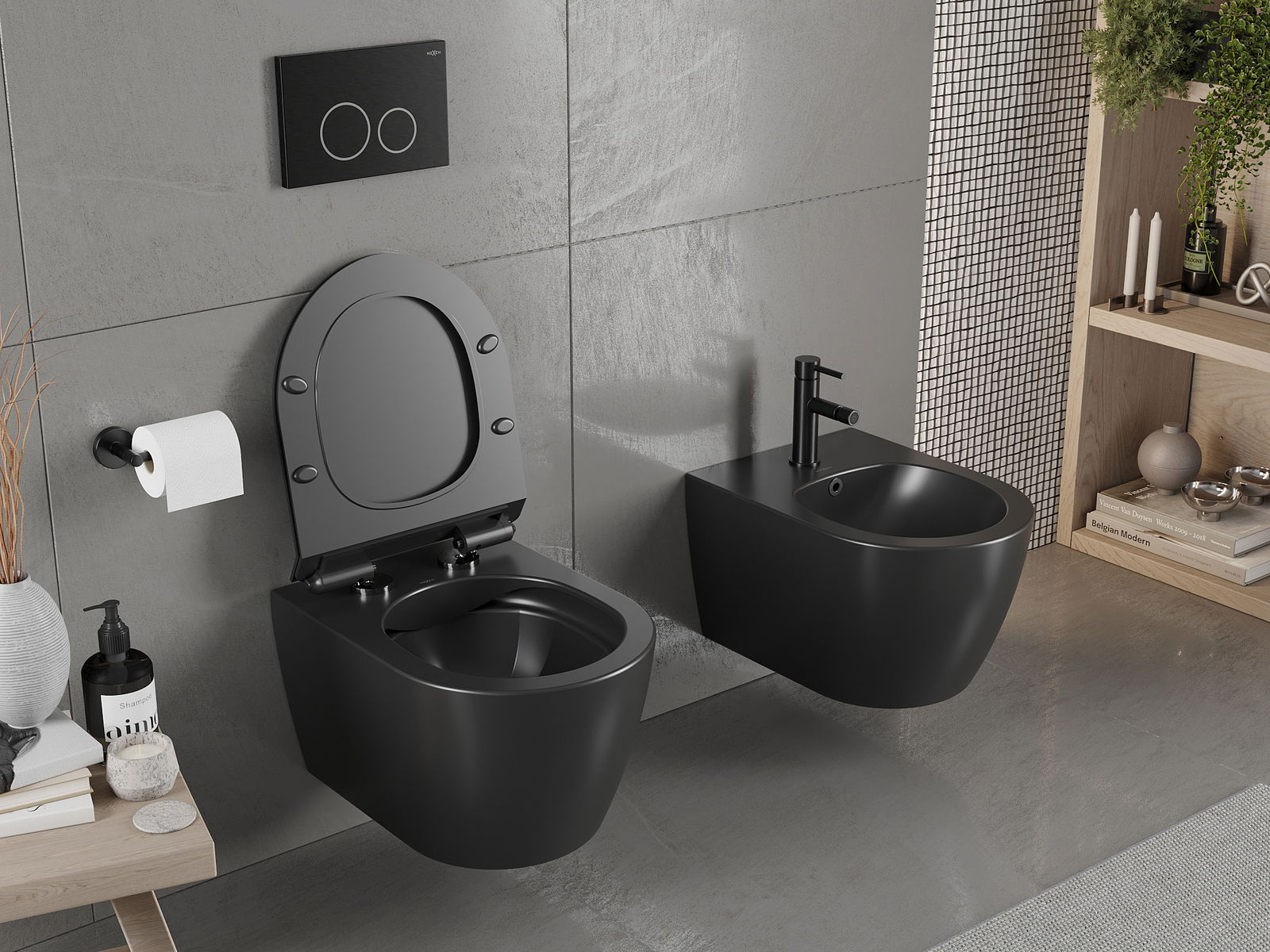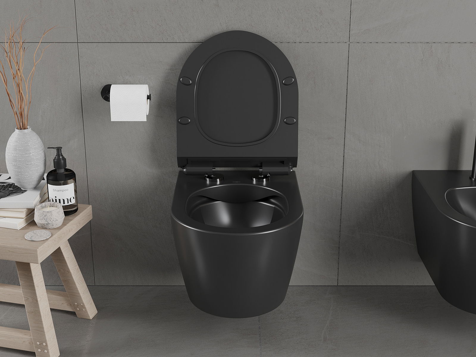 Mexen Carmen cuvette WC Rimless avec abattant slim à fermeture lente, duroplast, noir mat - 30880185