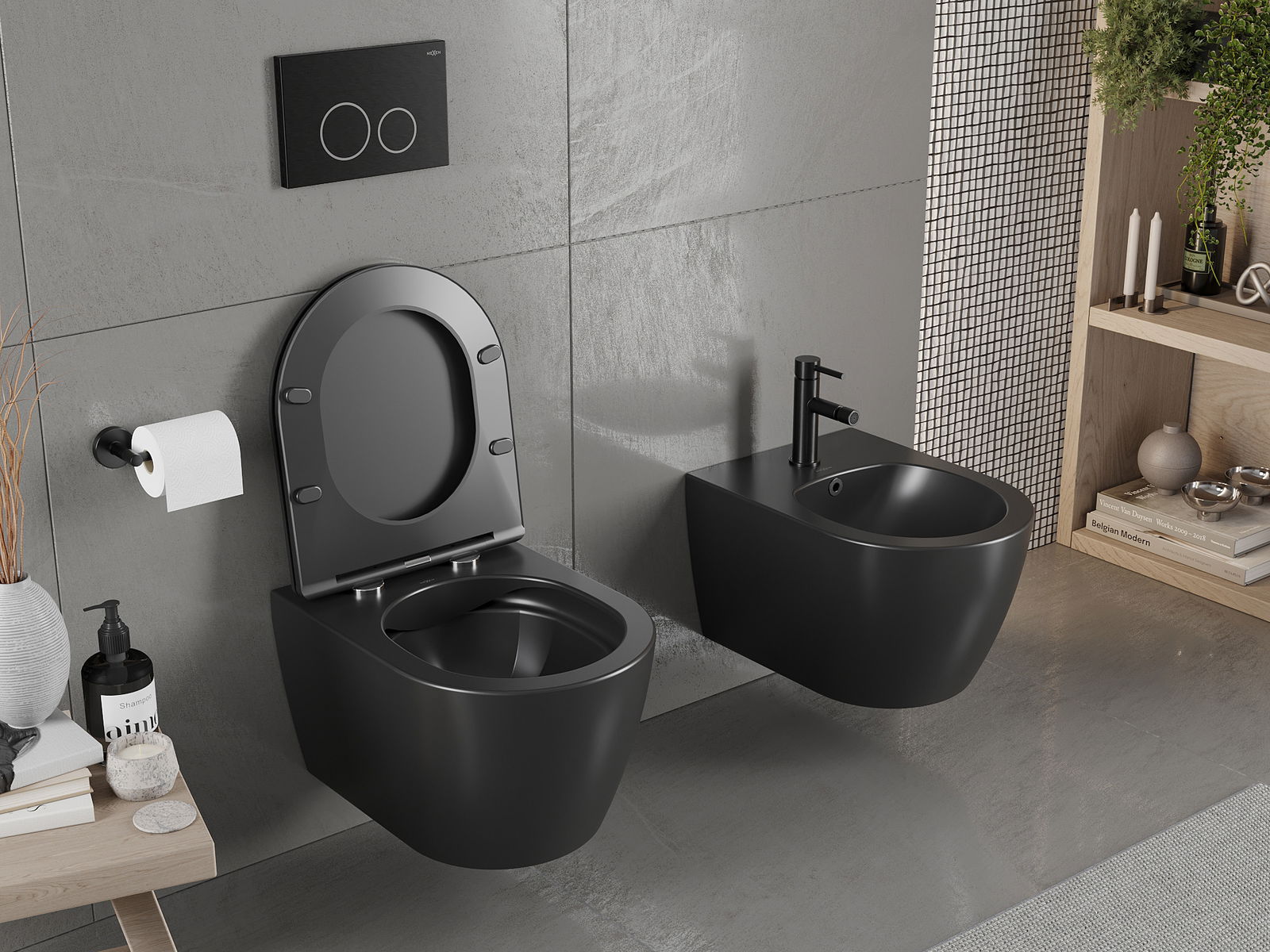 Mexen Carmen cuvette WC Rimless avec abattant à descente lente slim, duroplast, noir mat - 30881085