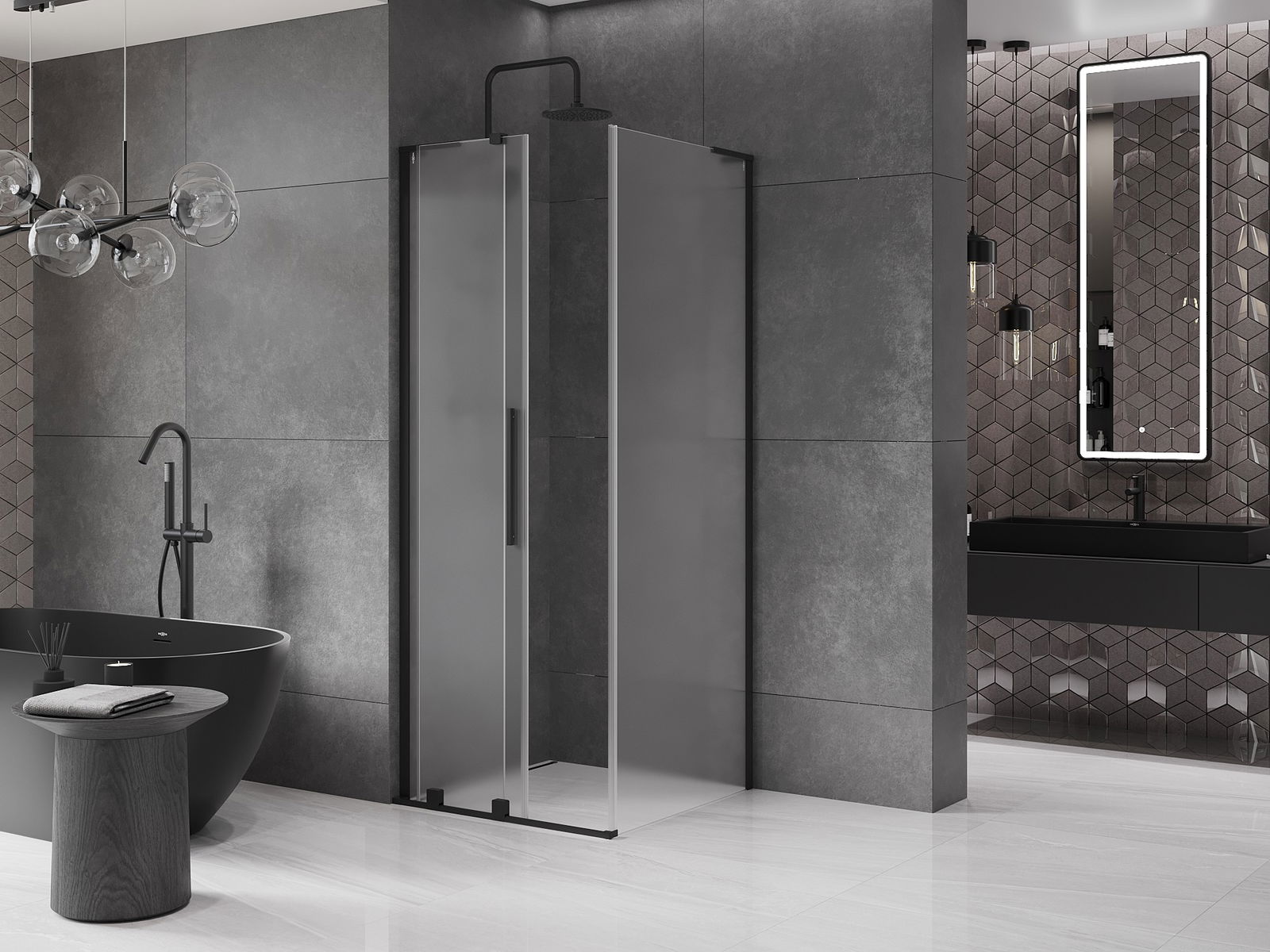 Mexen Velar L cabine de douche coulissante 90 x 90 cm, givre, noir - 871-090-090-33-70