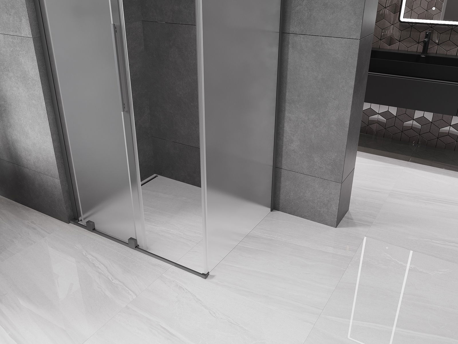 Mexen Velar L cabine de douche coulissante 100 x 110 cm, givrée, métal gun - 871-100-110-33-95