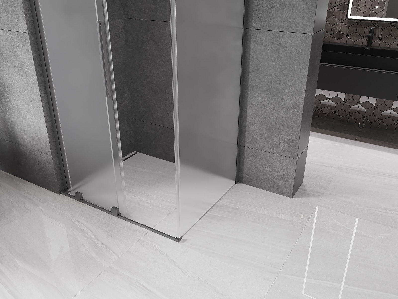 Mexen Velar L cabine de douche coulissante 110 x 80 cm, givré, gun metal - 871-110-080-33-95