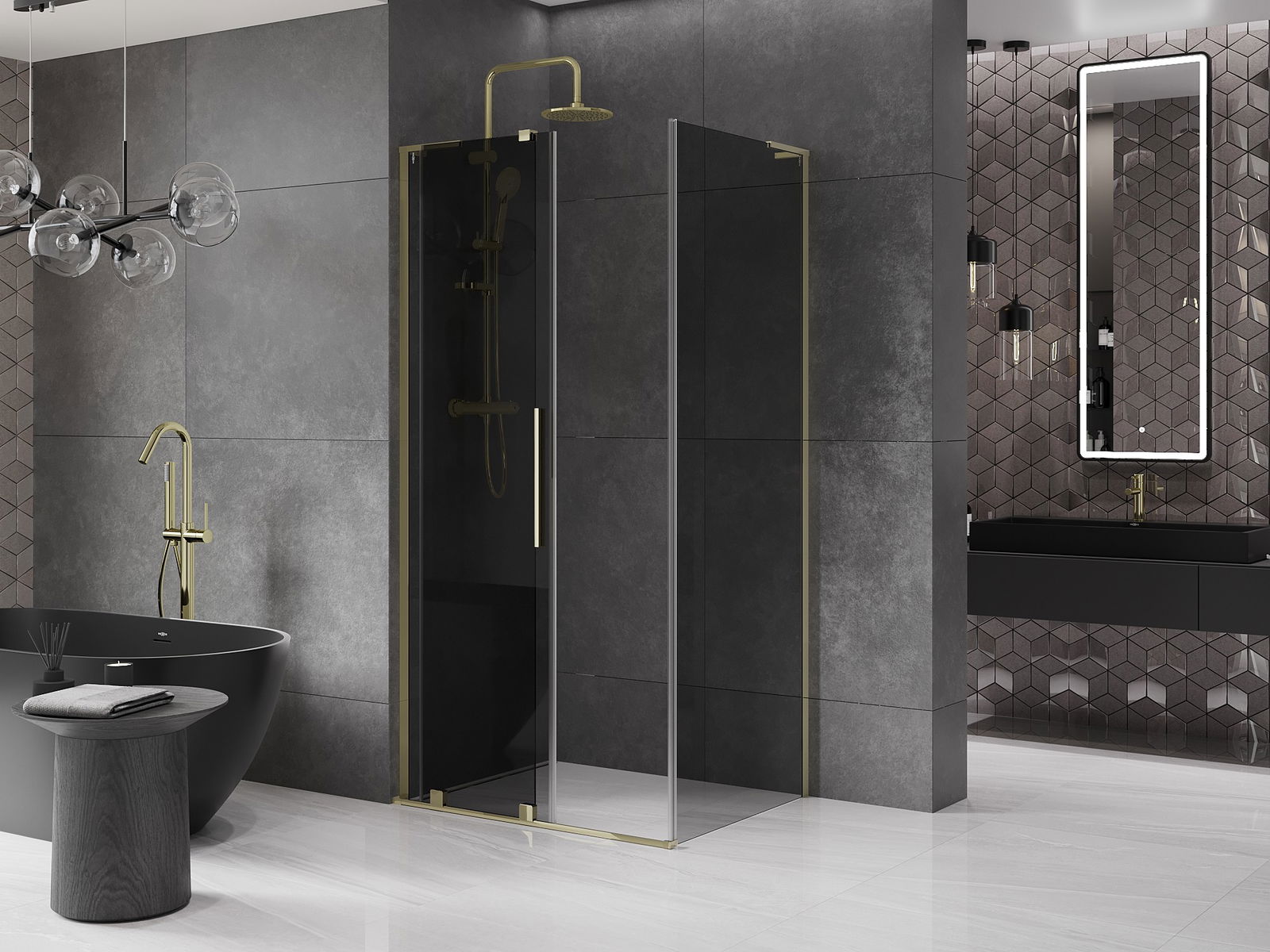Mexen Velar L cabine de douche coulissante 120 x 100 cm, graphite, or - 871-120-100-43-50