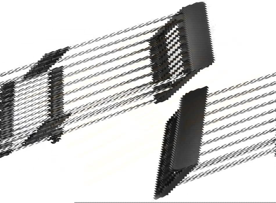 Égouttoir universel avec possibilité d'extension permettant de l'adapter encore mieux aux besoins individuels. Grâce à la régulation, nous pouvons ajuster la largeur de l'égouttoir à la quantité de vaisselle lavée ou à la dimension de l'évier, et le replier facilement.