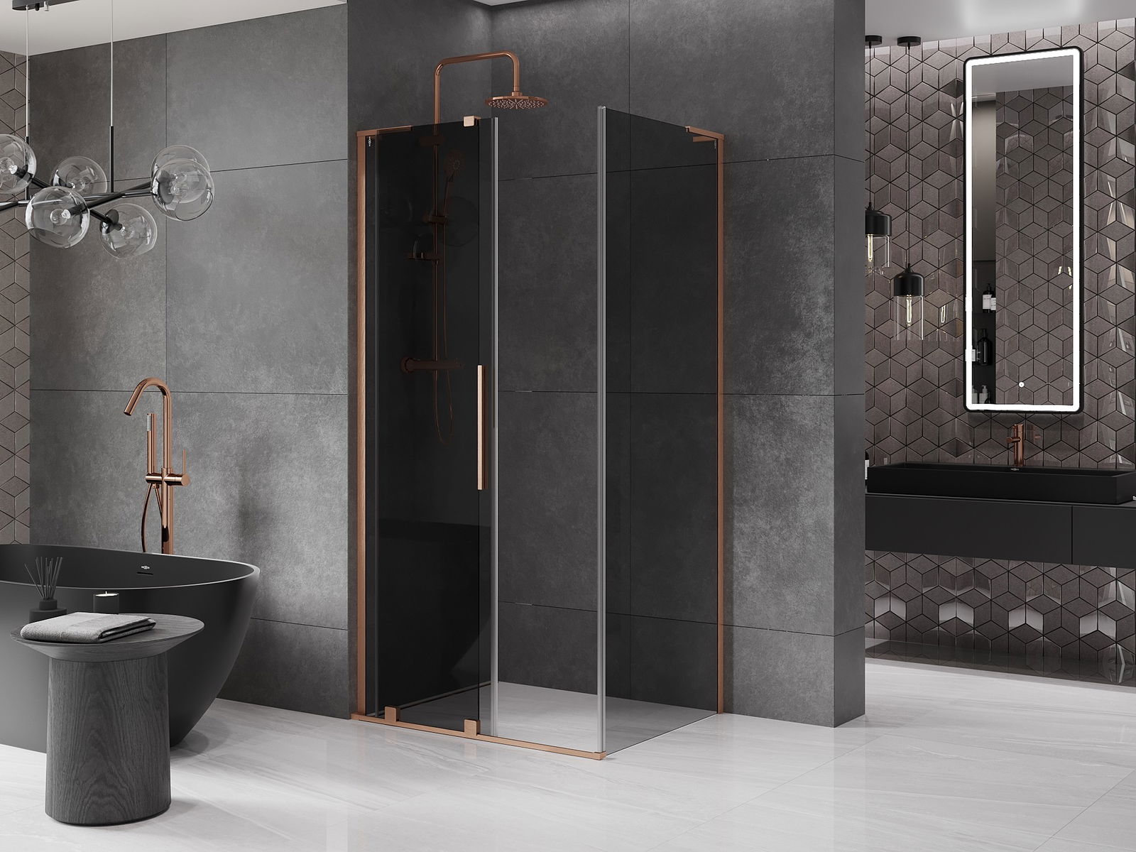 Mexen Velar L cabine de douche coulissante 110 x 75 cm, graphite, cuivre brossé - 871-110-075-43-65
