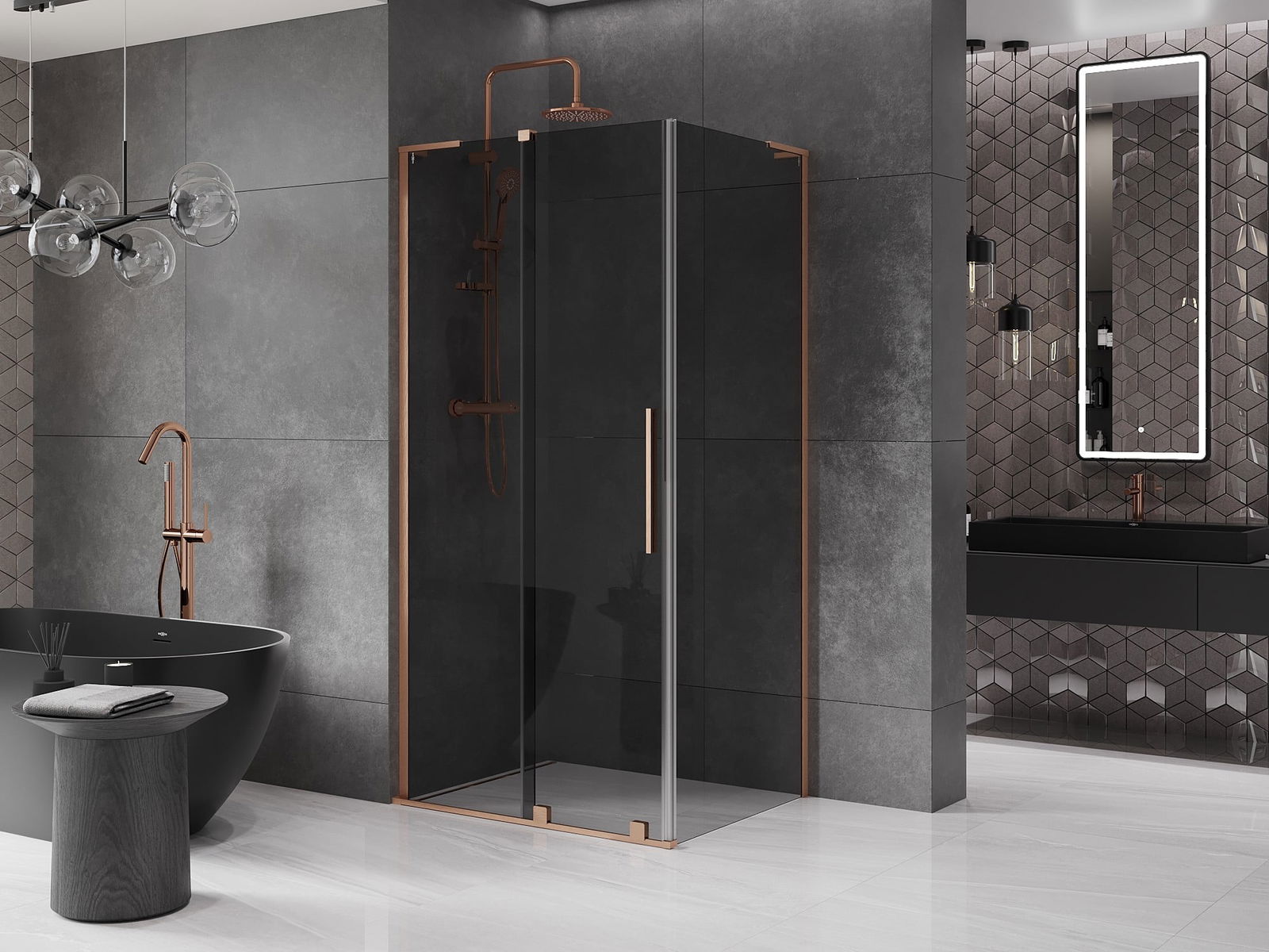 Mexen Velar L cabine de douche coulissante 110 x 90 cm, graphite, cuivre brossé - 871-110-090-43-65
