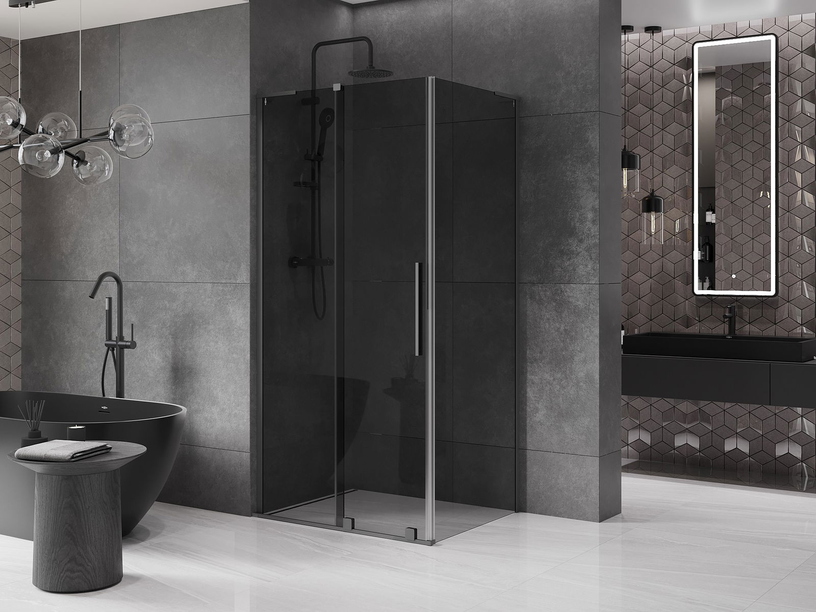 Poignée pratique et confortable en acier inoxydable. La forme moderne associée à une finition assortie à la couleur des profilés confère à l'ensemble un aspect moderne et élégant, soulignant l'esthétique de chaque salle de bain.