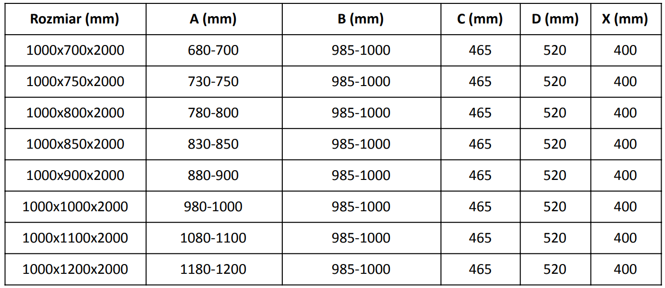 Taille : 100x120 cm (porte 100 cm, paroi 120 cm)