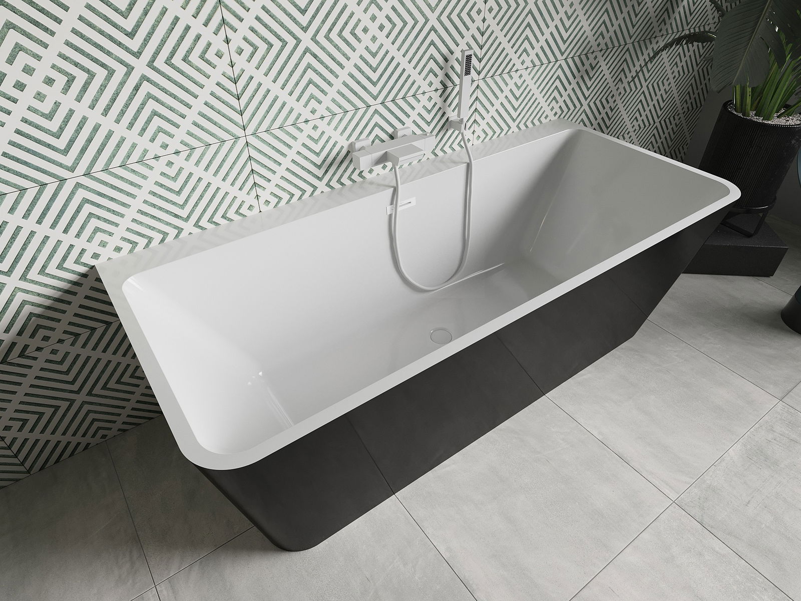 Mexen Volta baignoire autoportante adossée 170 x 75 cm, blanche/noire, trop-plein blanc - 51131707575-20