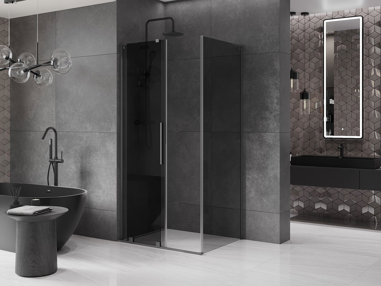 Poignée pratique et confortable en acier inoxydable. La forme moderne associée à une finition assortie à la couleur des profilés confère à l'ensemble un aspect moderne et élégant, soulignant l'esthétique de chaque salle de bain.