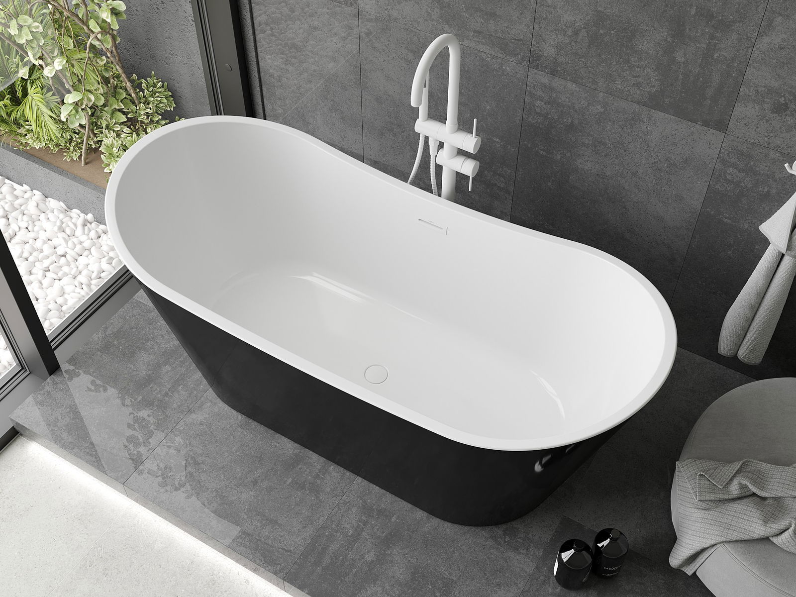 La baignoire autoportante 150 x 75 cm est un excellent choix pour ceux qui apprécient l'élégance et le confort. Fabriquée en acrylique sanitaire, elle se caractérise par une résistance impressionnante au ternissement et aux rayons UV. Sa forme ovale et son fini semi-mat en couleur blanche/noire apportent une touche de modernité à la salle de bains. Grâce à son installation autoportante et à son trop-plein intégré, l'utilisation sera confortable et fonctionnelle. Le siphon et le bouchon clic-clac sont inclus.