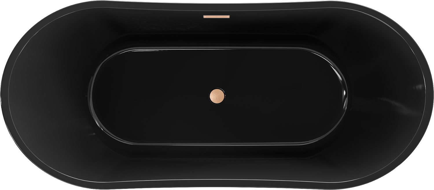 Baignoire autoportante noire, dimensions 170 x 80 cm, alliant élégance et fonctionnalité. Fabriquée en acrylique sanitaire, elle offre une résistance au ternissement et aux rayons UV. Sa forme ovale et sa finition de haute qualité en couleur cuivre brossé lui confèrent du style. La baignoire a une hauteur de 72 cm et une profondeur de 44,5 cm, assurant un confort optimal lors du bain. L'orifice de trop-plein et le siphon inclus sont des atouts supplémentaires qui en font un choix idéal pour toute salle de bain.