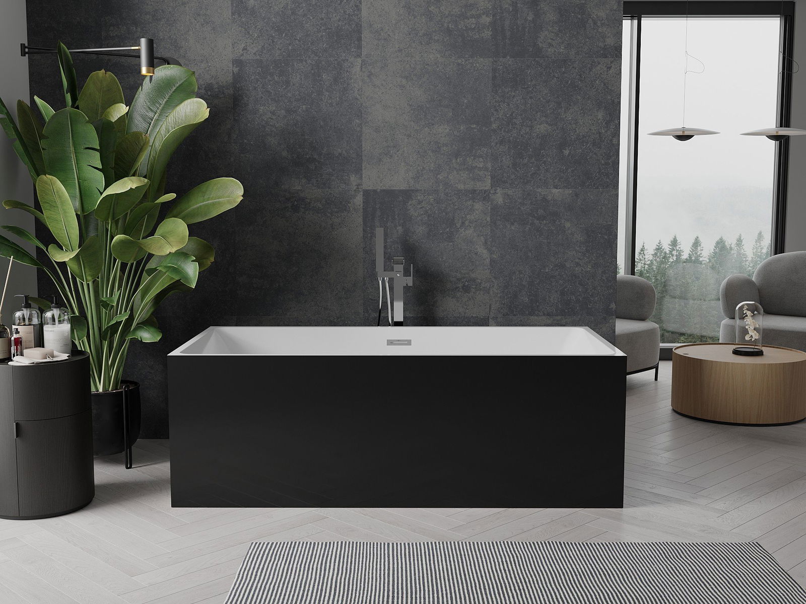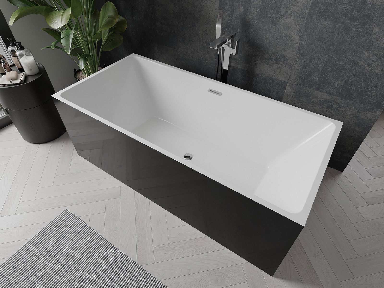 Mexen Nita baignoire autoportante 170 x 80 cm, blanche/noire, trop-plein chromé - 52091708075-01