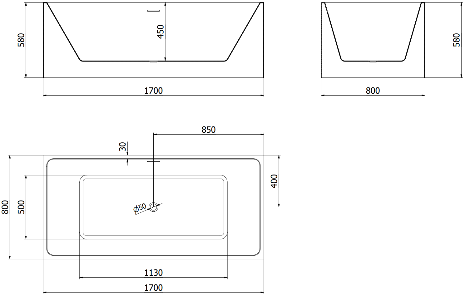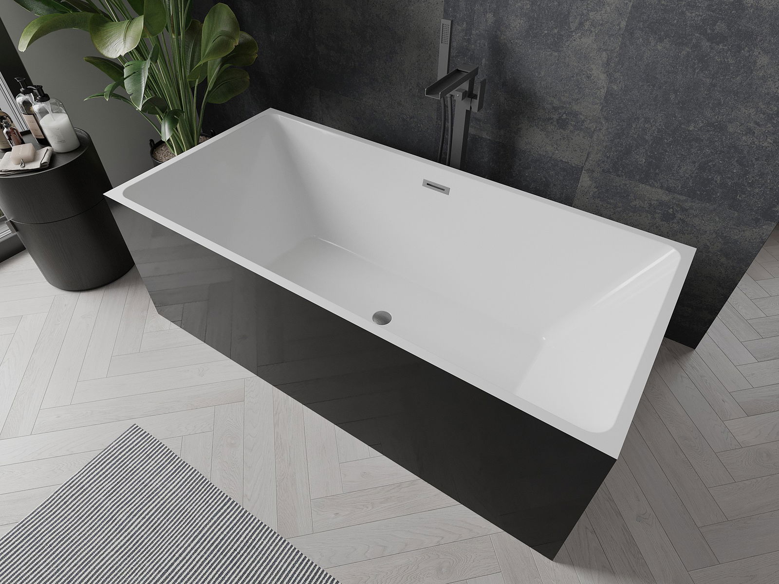 Mexen Nita baignoire autoportante 170 x 80 cm, blanc/noir, trop-plein gun gray brossé - 52091708075-66