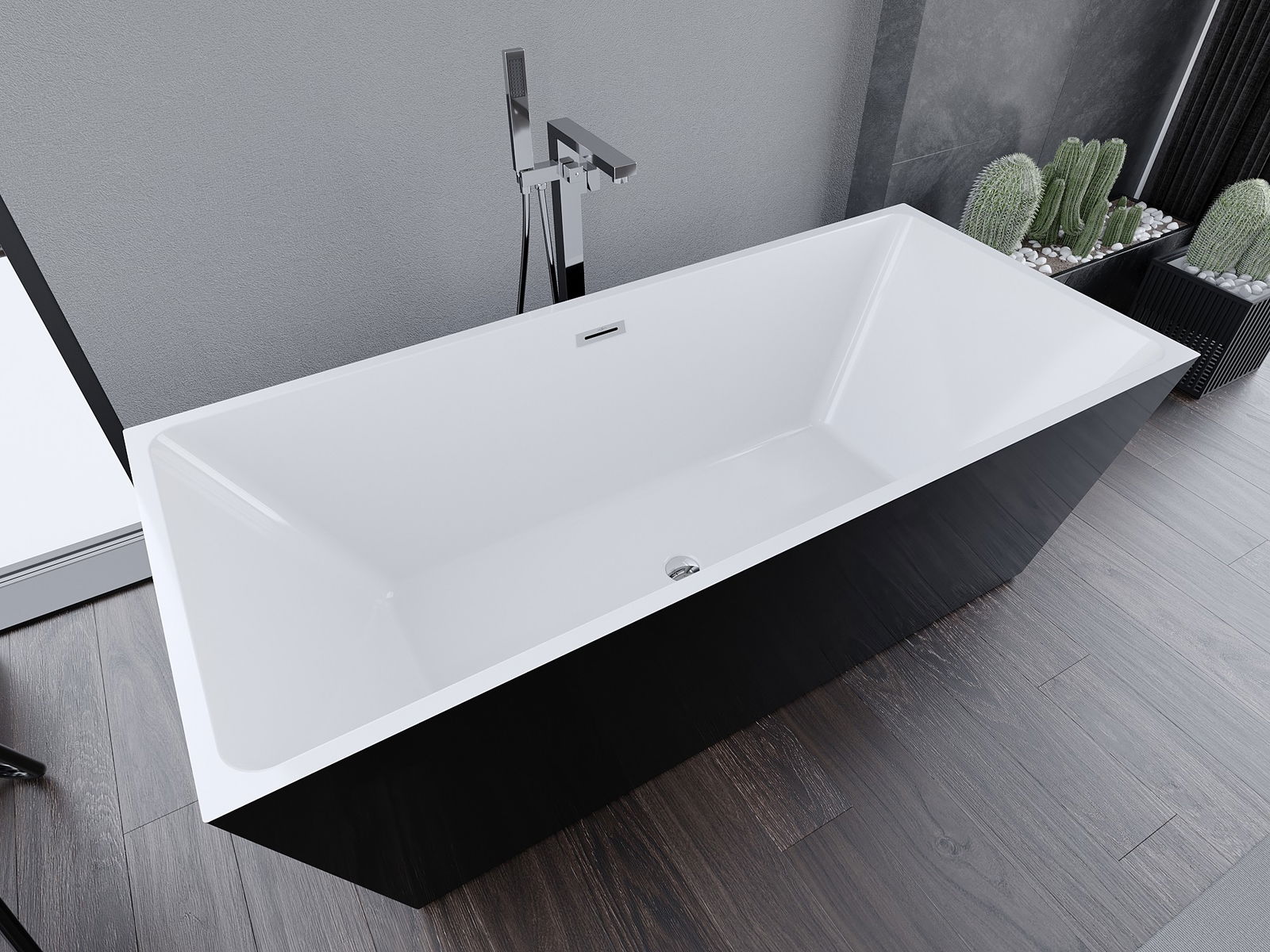 Mexen Lita baignoire autoportante 170 x 75 cm, blanc/noir, trop-plein chromé - 52121707575-01