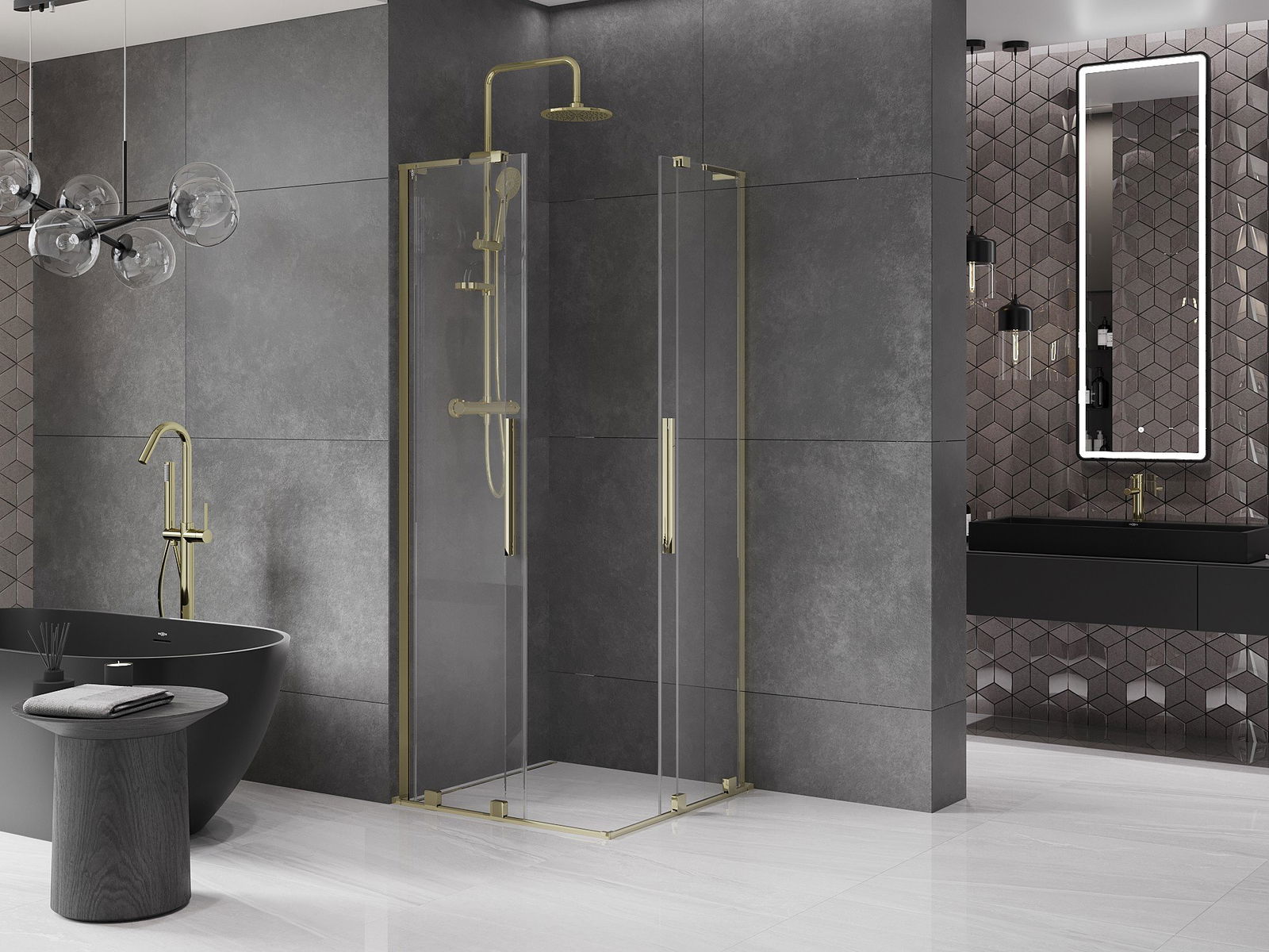 Mexen Velar L Duo cabine de douche coulissante 80 x 80 cm, transparente, or - 871-080-080-02-03-50