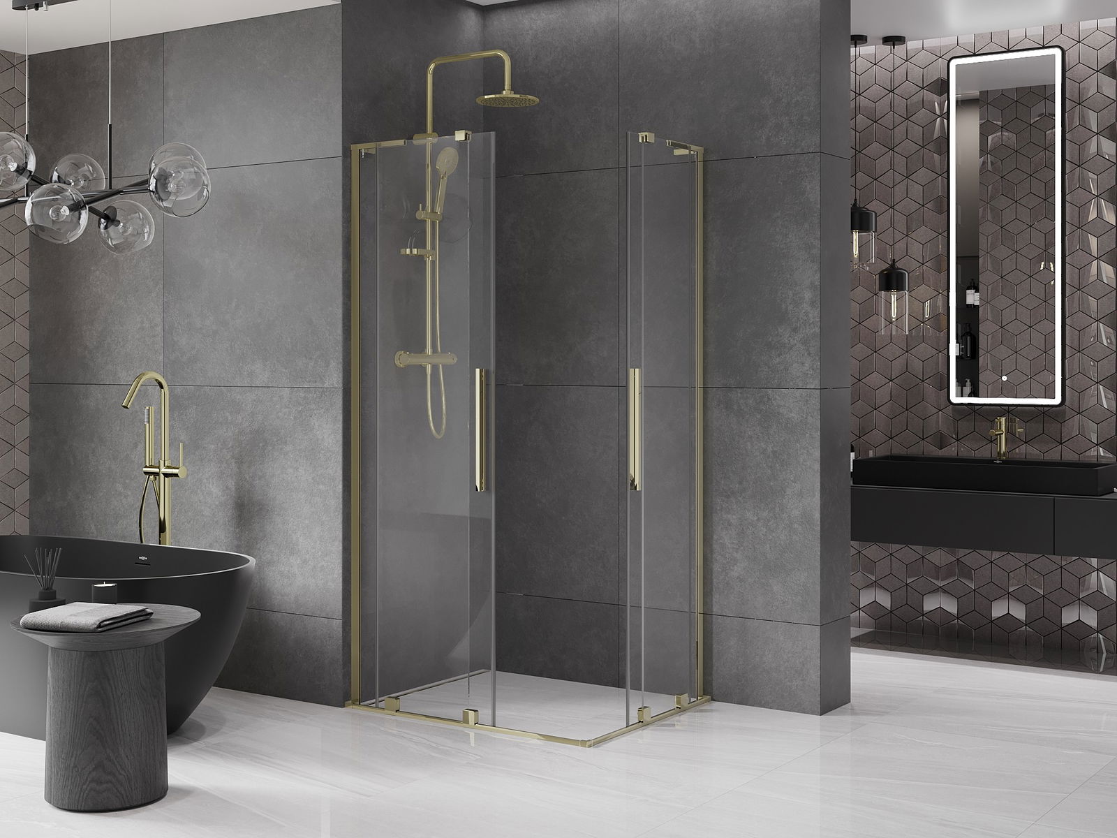 Mexen Velar L Duo cabine de douche coulissante 90 x 80 cm, transparent, or - 871-090-080-02-03-50