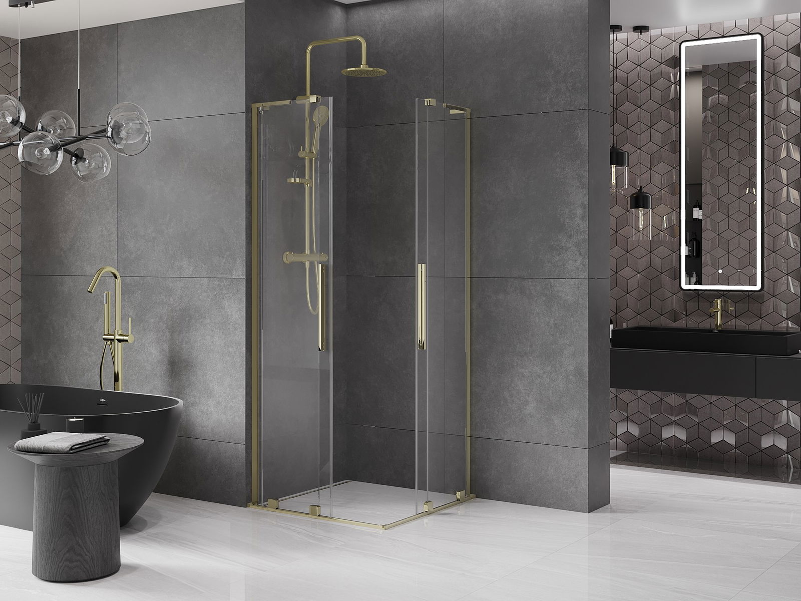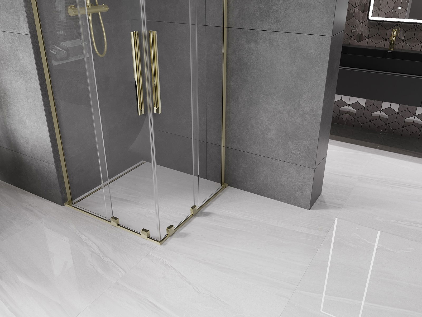 Mexen Velar L Duo cabine de douche coulissante 100 x 100 cm, transparent, or - 871-100-100-02-03-50