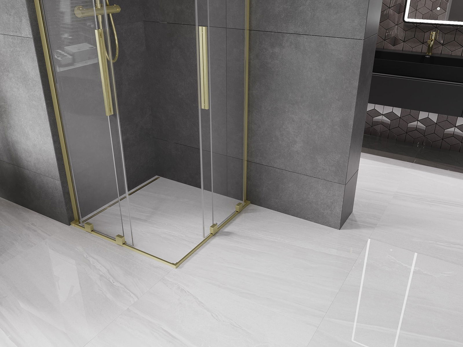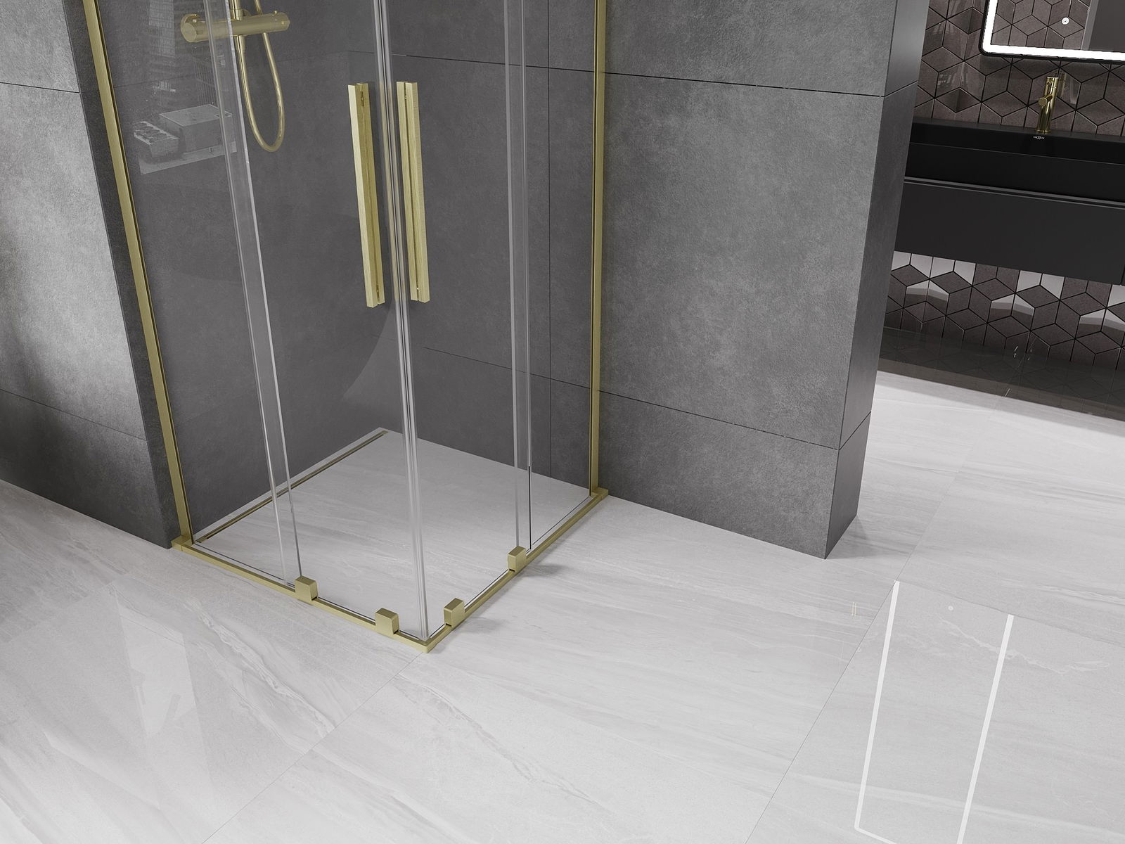 Mexen Velar L Duo cabine de douche coulissante 80 x 80 cm, transparent, or brossé - 871-080-080-02-03-55