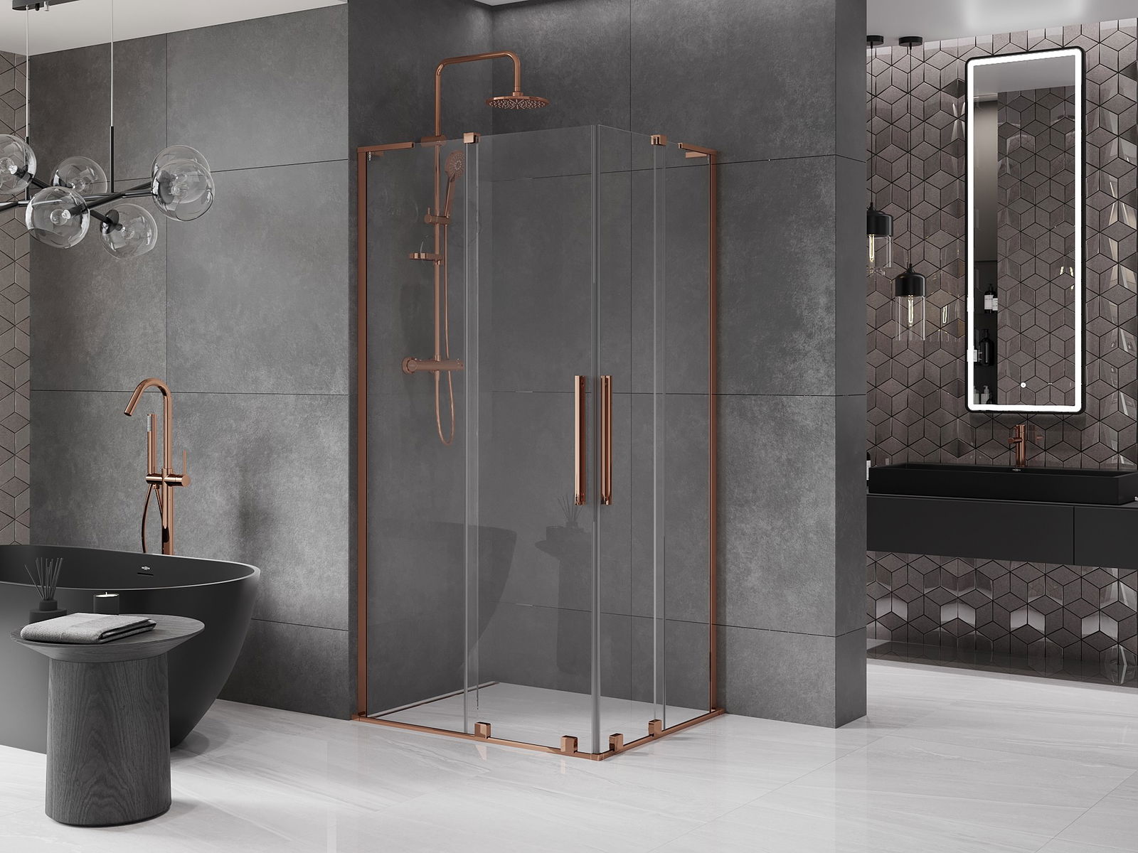 Mexen Velar L Duo cabine de douche coulissante 100 x 90 cm, transparent, or rose - 871-100-090-02-03-60