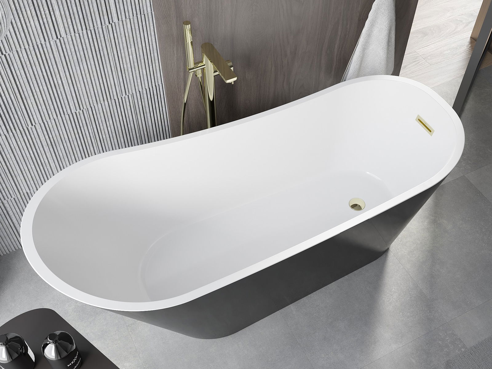 Mexen Alta baignoire autoportante 170 x 75 cm, blanche/noire, trop-plein doré - 52141707575-50