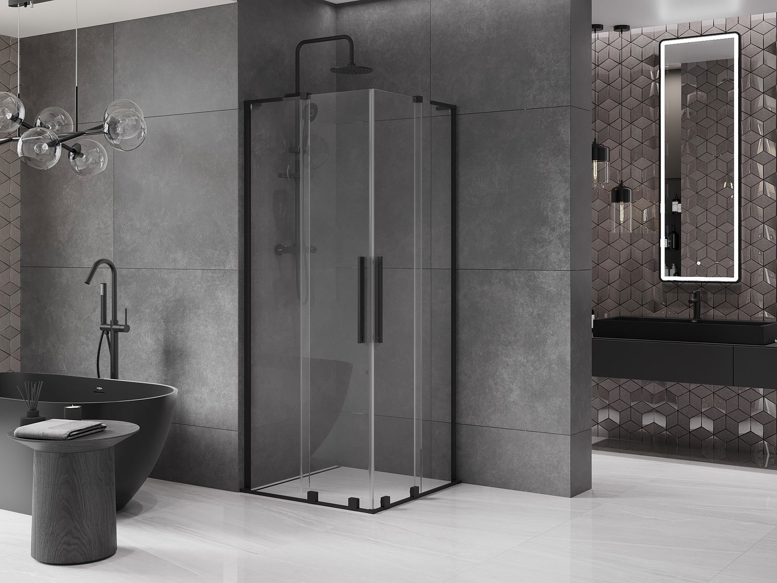 Mexen Velar L Duo cabine de douche coulissante 80 x 80 cm, transparent, noire - 871-080-080-02-03-70