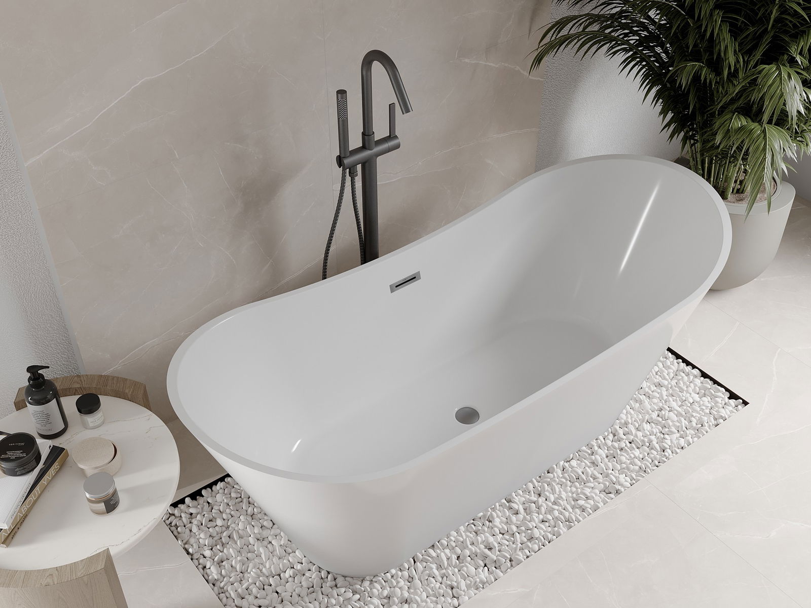 Mexen Celia baignoire autoportante 170 x 75 cm, blanche, trop-plein en métal gun - 52331707500-95