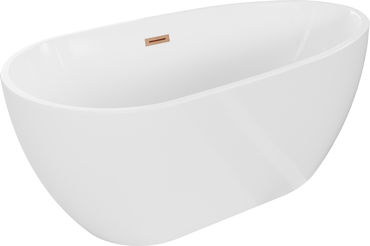 Mexen Eos baignoire autoportante 150 x 75 cm, blanche, trop-plein cuivre brossé - 52471507500-65