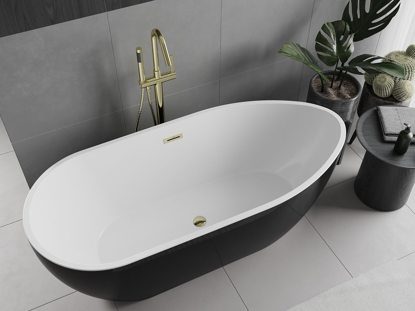 Mexen Eos baignoire autoportante 150 x 75 cm, blanc/noir, trop-plein doré - 52471507575-50
