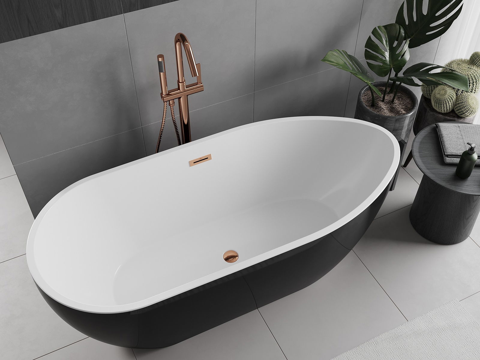 Mexen Eos baignoire autoportante 150 x 75 cm, blanc/noir, trop-plein or rose - 52471507575-60
